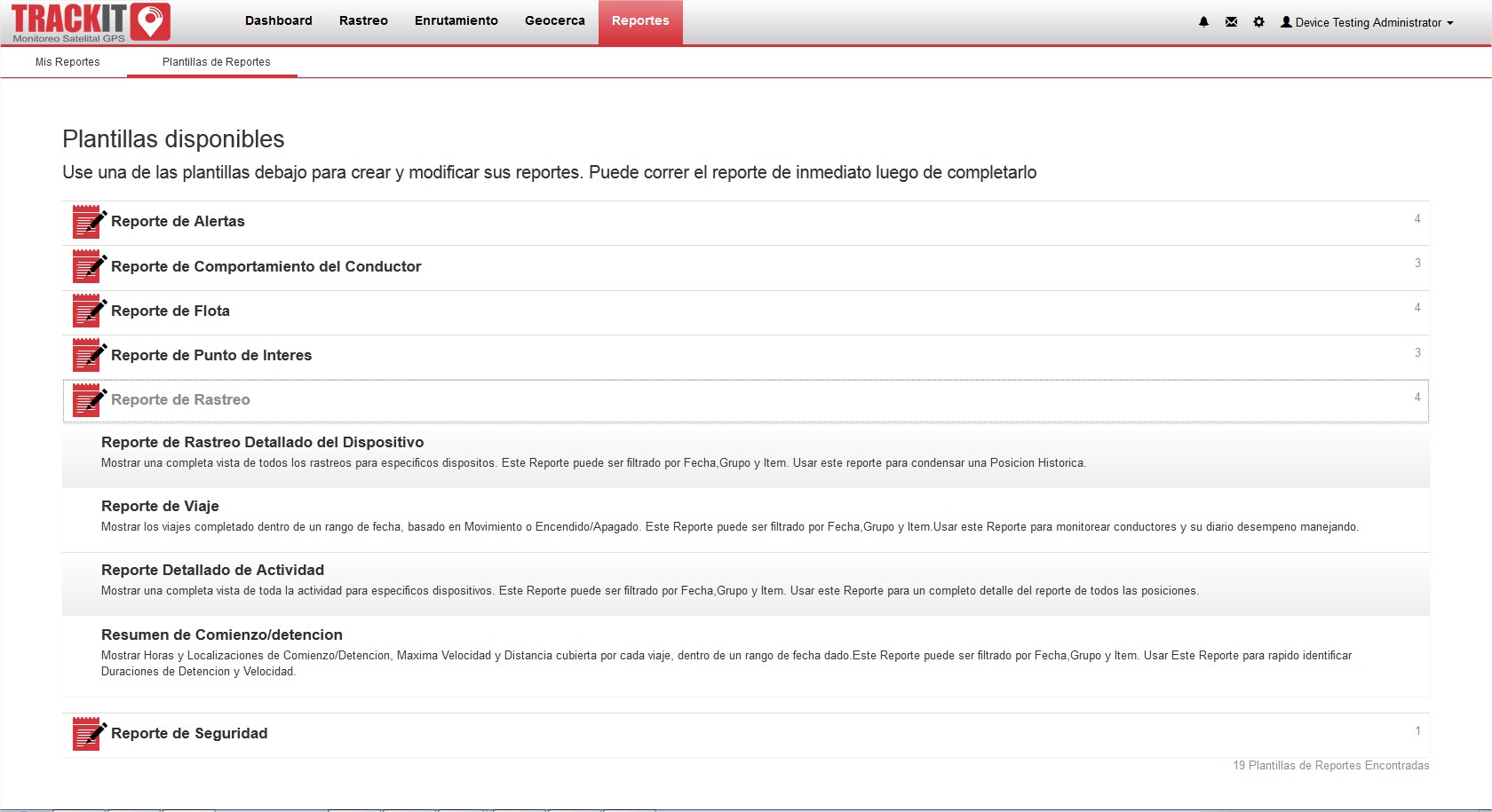 Reportes de Rastreo